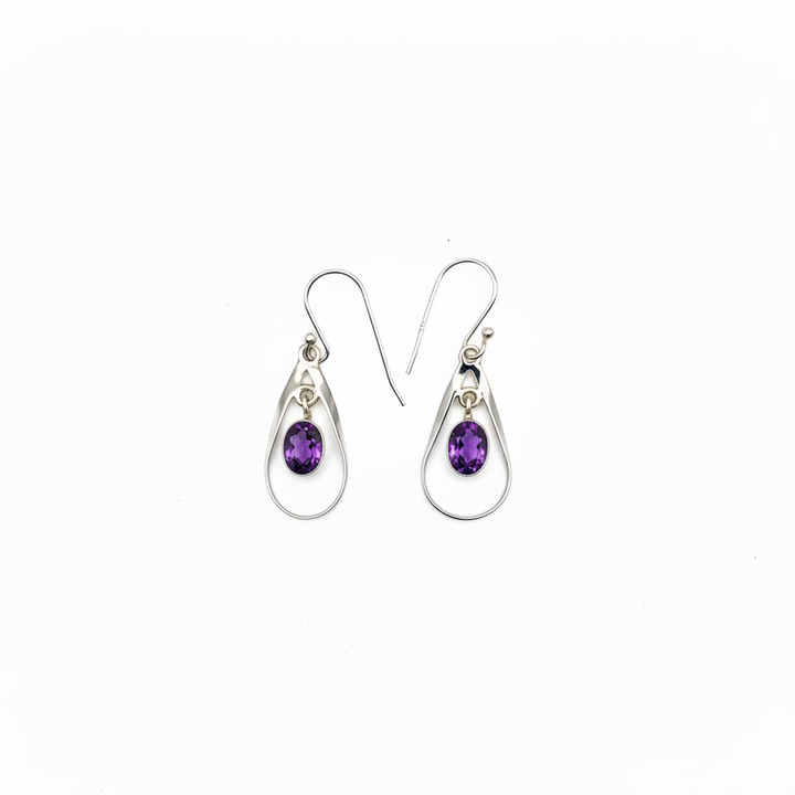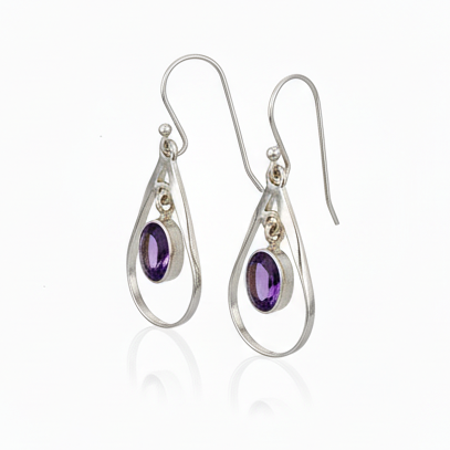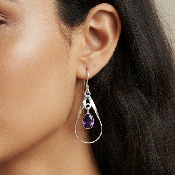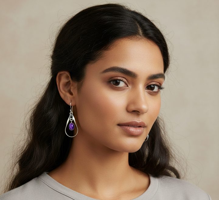 Pure 925 Silver Amethyst Danglers Earrings For Women