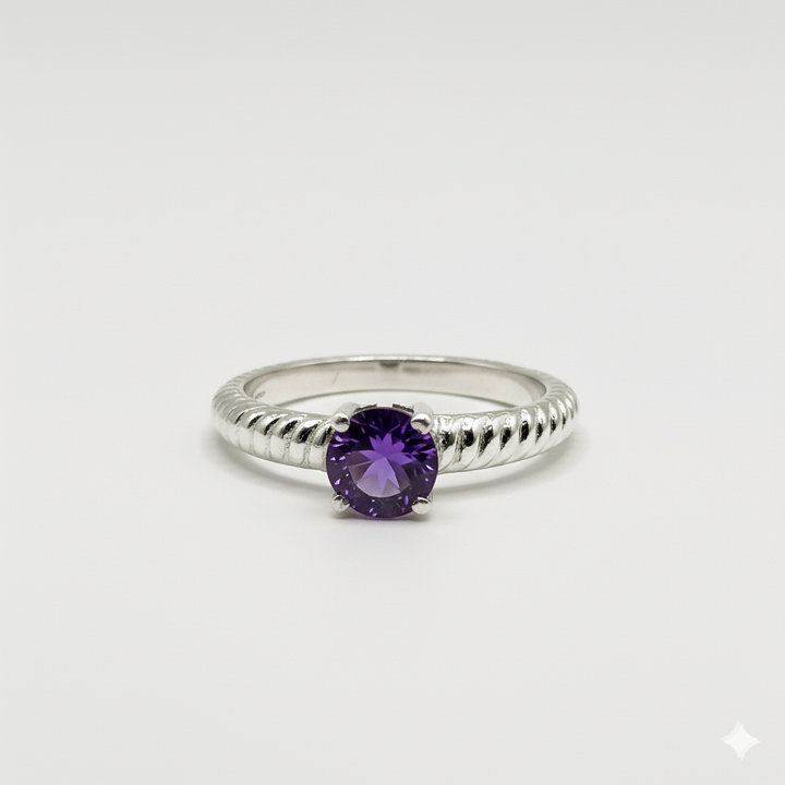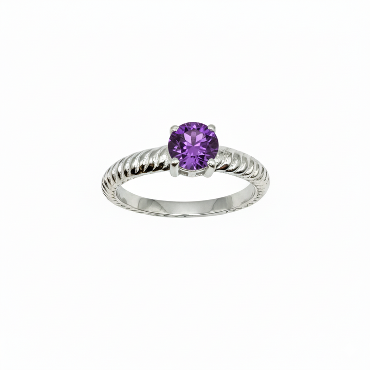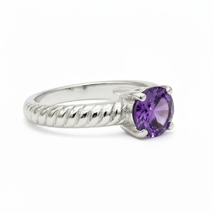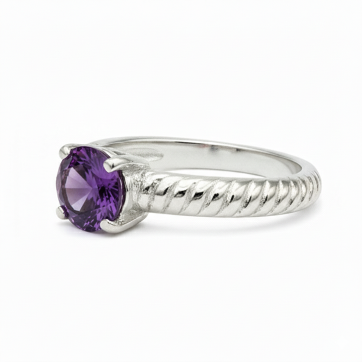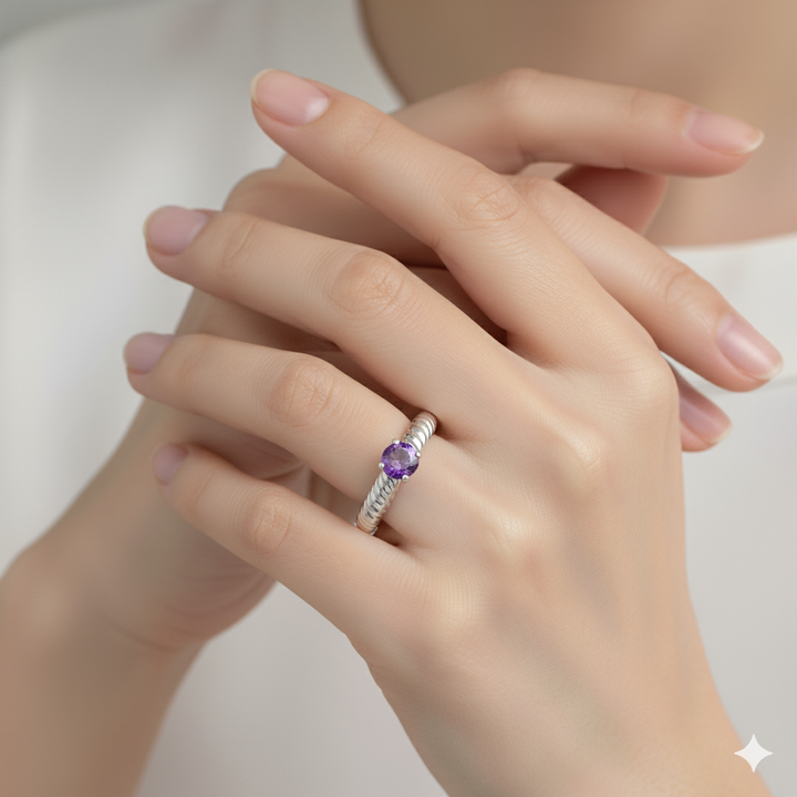 Pure 925 Silver Ribbed Amethyst Ring For Women