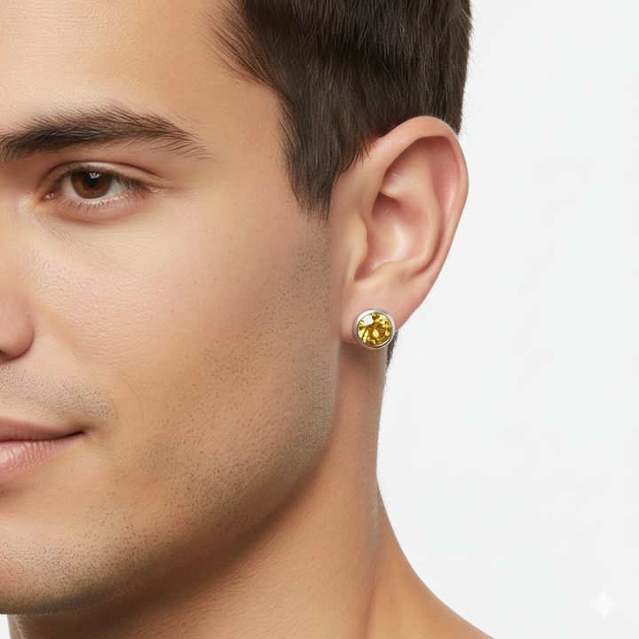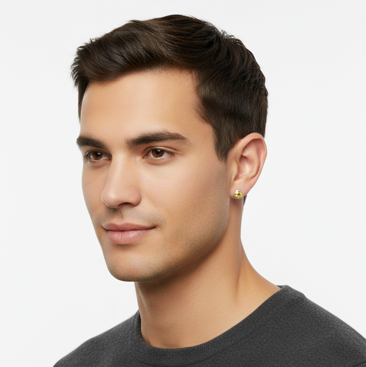 Pure 925 Silver Round Cut Citrine Stud Earrings For Men & Women