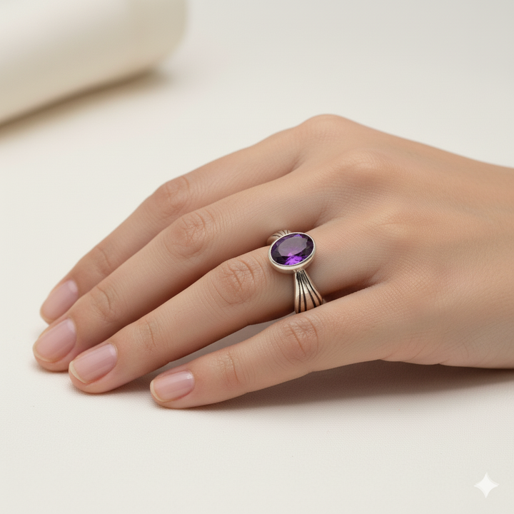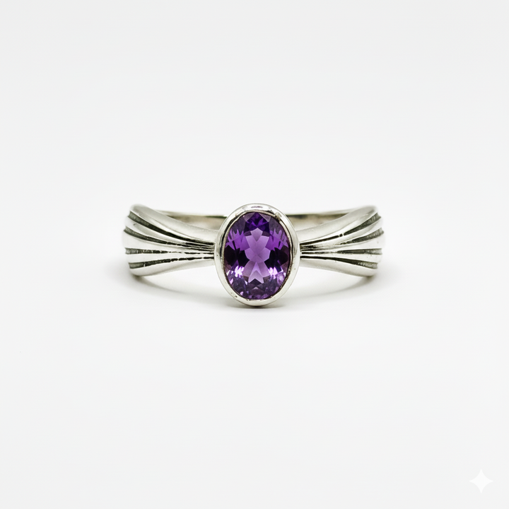 Pure 925 Silver The Crescent Amethyst Ring For Women