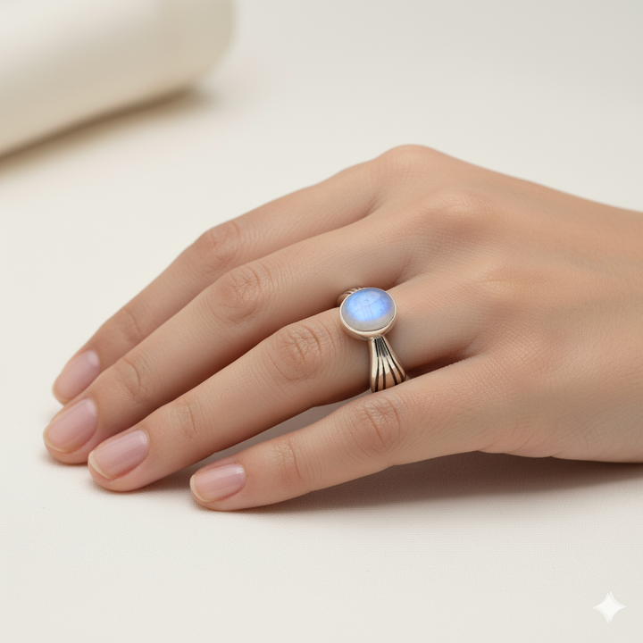 Pure 925 Silver The Crescent Moonstone Ring For Women