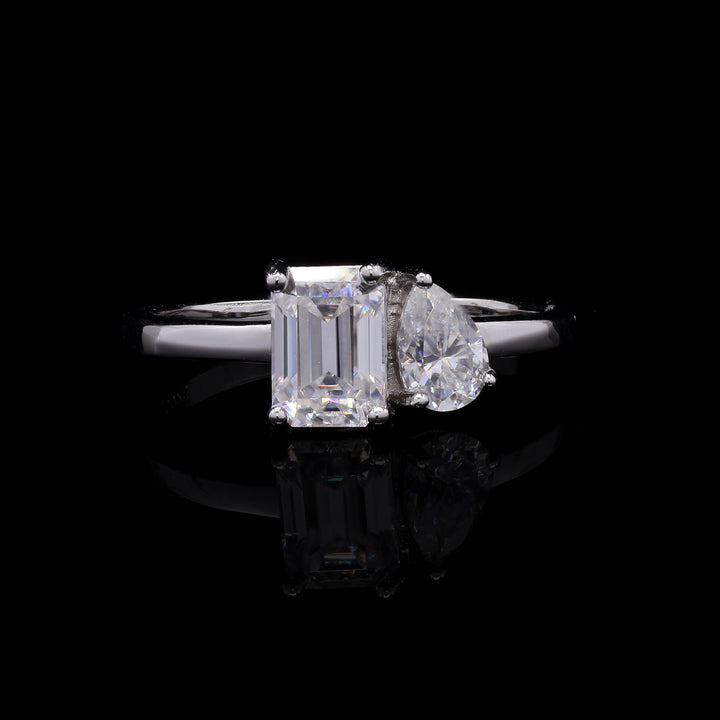 Pure 925 Silver Toi-Et-Moi Moissanite Diamond Ring For Women