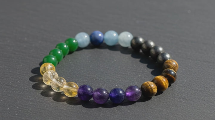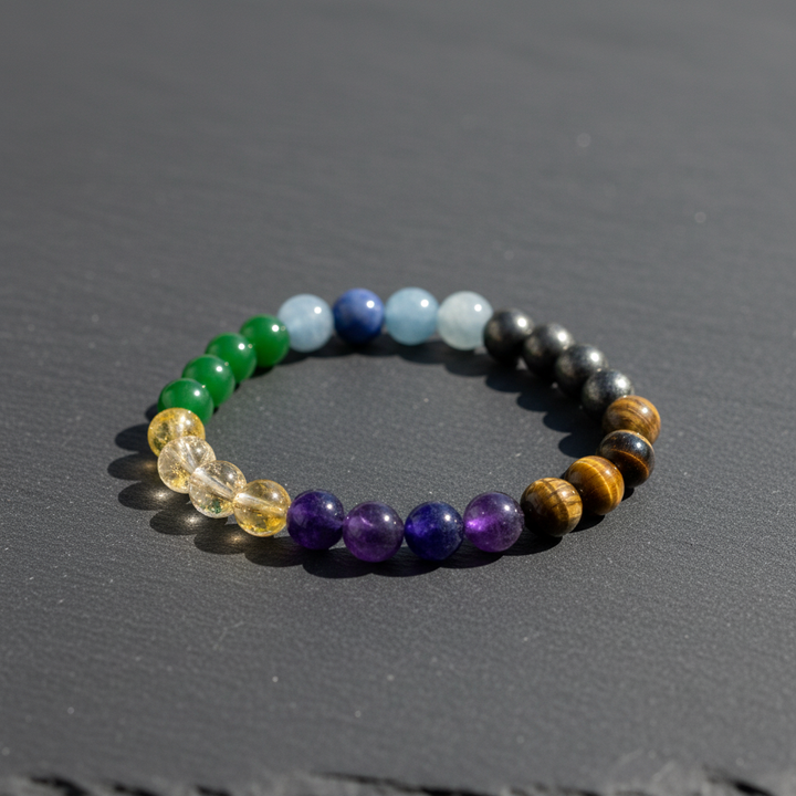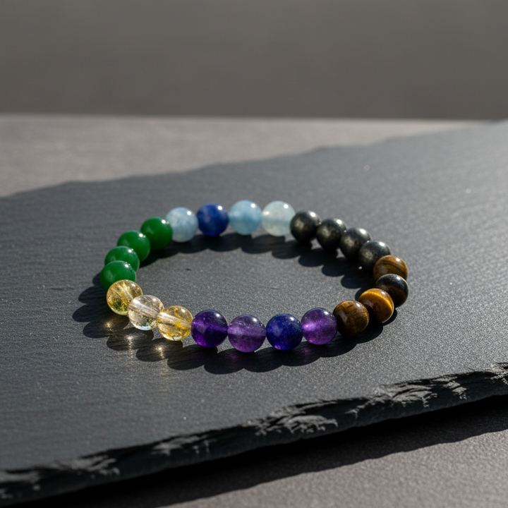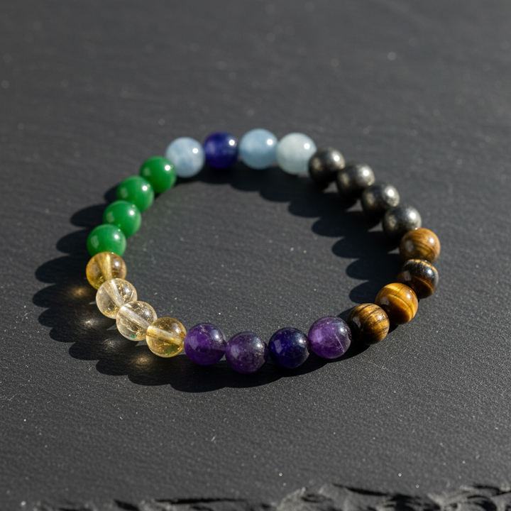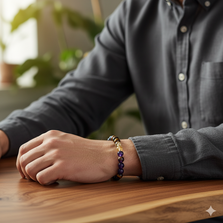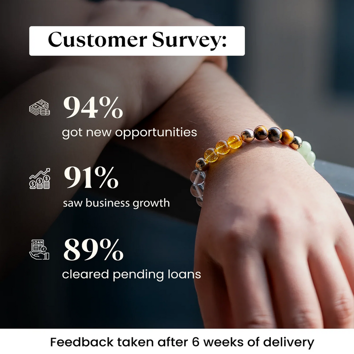 The Vyapari Bracelet boosts career growth, business success, reduction in stress and good luck using the energy of 6 natural crystals.